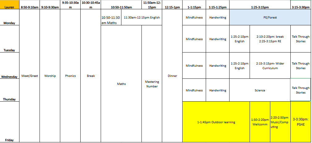 Below is a copy of Willow class timetable.
